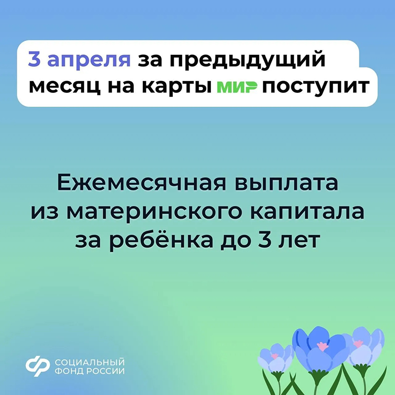💳 Напоминаем, что перечисления осуществляются в новом месяце за предыдущий. Это значит, что в апреле вы получаете пособия за март.